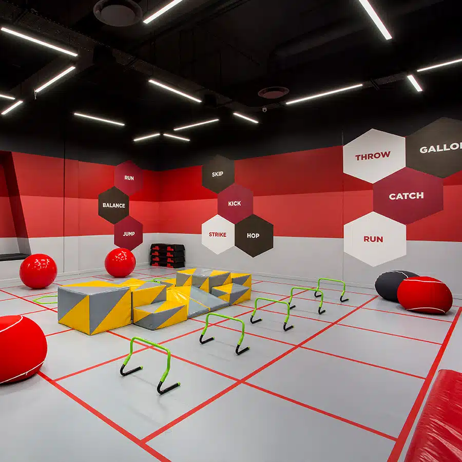 Access-controlled movement & care space for kids from 6 weeks to 13 years.